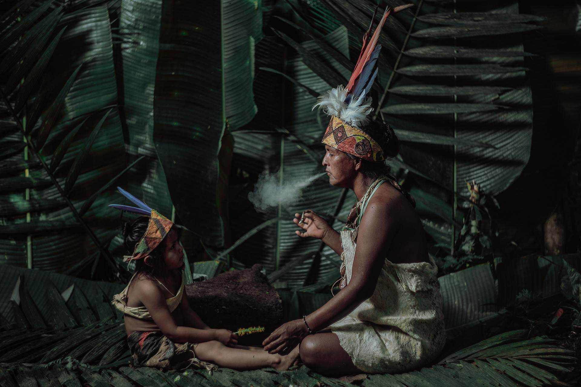 For the Tikuna people (Maguta), the territory means the space where mothers and owners of what exists live. The owners of the plants (Makutuku), animals (Dayai), fishes (Yewae) and all lives in the world above, i.e. the wind and the birds (Oma). Everything is subordinated to an order established by the shamans (Auneku) and the grandparents of each of the clans. Tobacco weaves threads represented on roads that pass through the jungle. These threads connect all worlds and it enables people to communicate with their ancestors (Yunatugu). The territory means that place of creation and the living memory of their ancestors.